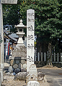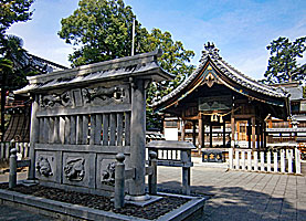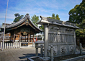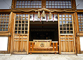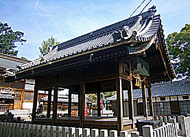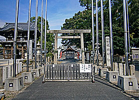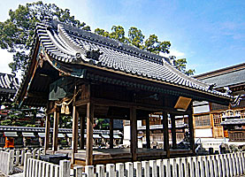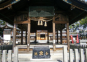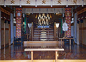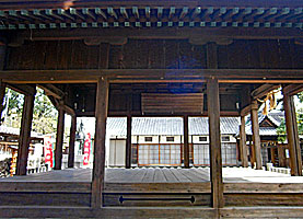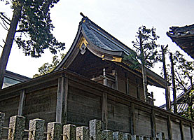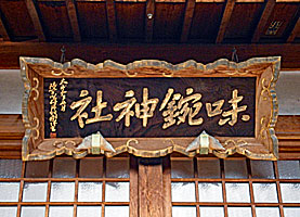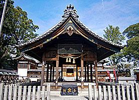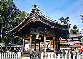 【祭神】宇麻志麻治命(Umashimadi-no-mikoto)、 味饒田命(Majinigita-no-mikoto)、日本武命(Yamatotakeru-no-mikoto)、天照大神(Amaterasu-oomikami)、別雷神(Wakeikazuchi-no-kami)、天児屋根命(Amenokoyane-no-mikoto)、品陀別命(Homdawake-no-mokoto)(15代応神天皇)、武甕槌命(Takemikaduchi-no-mikoto)